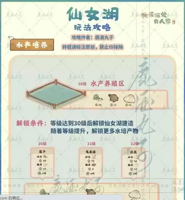 1.桃源深处有人家仙女湖解锁需要等级30级,舒适度*6600,铜钱*10000。