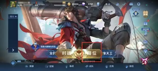 1、进入游戏中,点击排位或者对战。