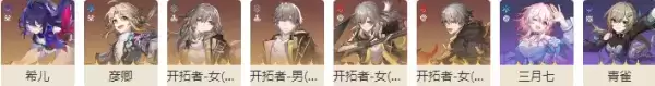 晋阶角色:希儿、彦卿、三月七、青雀。