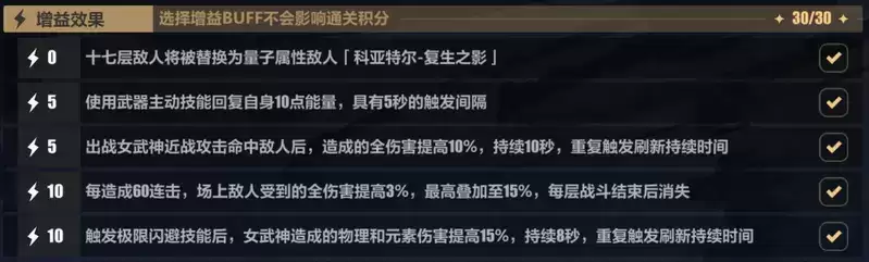 增益效果:第17层boss选量子泥鳅。本期增益效果对羽兔来说用处不大,选前4条就行。
