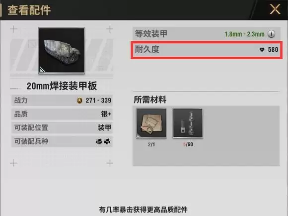 2、装甲栏里有耐久度与抗爆,建议选耐久度,超重坦本身操作人员多=单位少,最需要耐久度,单位少不怕火炮的范围伤害能够攻击太多的血量
