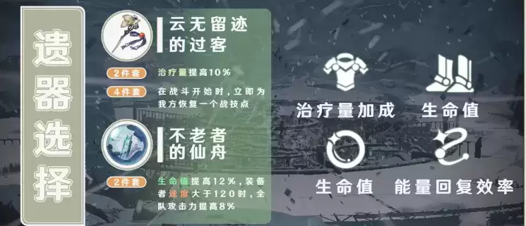 【云无留迹的过客】二件套增加治疗量无需多说,四件套额外增加战技点,是一个非常不错的辅助效果,缓解战技点的压力。