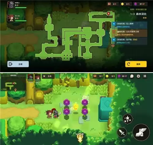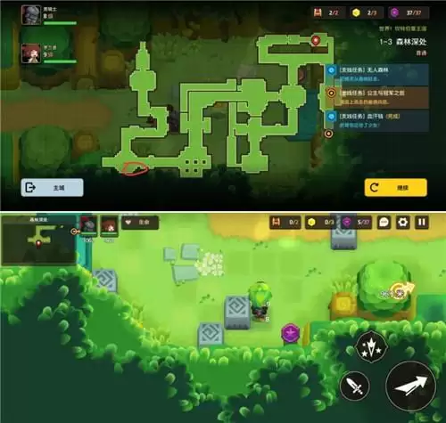 坎公骑冠剑1-3是一个森林关卡,画面一片绿油油的,在草丛中隐藏着不少物资呢?下面小编就为大家带来坎公骑冠剑1-3全收集攻略,一起来看下黄碎片、紫币、宝箱和支线任务的所在位置吧,帮助小伙伴们快速通关。