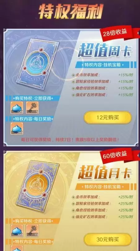 这几个免费途径的寻宝之钥建议大家尽可能地拿满换满,基本上还是比较容易的。然后就是氪金礼包了,游戏里给大家提供了很多礼包,还有月卡、周卡等等,性价比都是比较高的,有的还会给大家送一些别的材料。