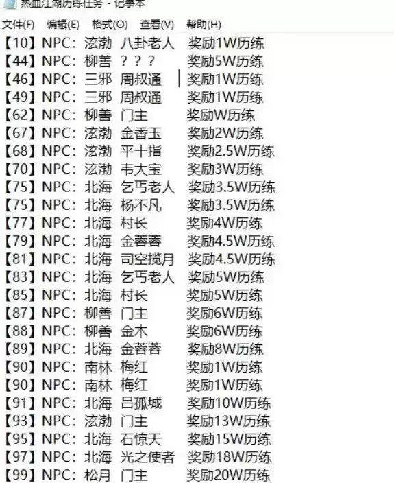 记录的是邪派的任务,正邪地图转换百级以内历练: