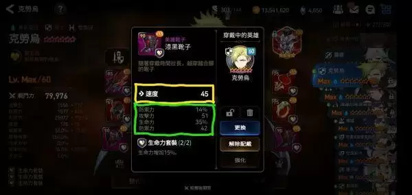 2、此外也可以选择【免疫+抗性套装】,这个可以用于针对异常控制队,配合阵型光环可以获得200左右的抗性,但缺点是就是的速度偏低容易被点杀;