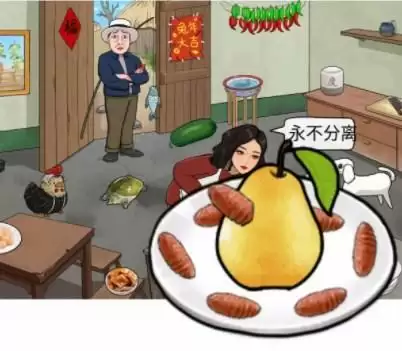 1.永不分离:拖动菜板上的梨和锅边上的蚕蛹到大锅;