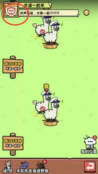 2、点击进入后是可以看到左上角位置的羊群头像。