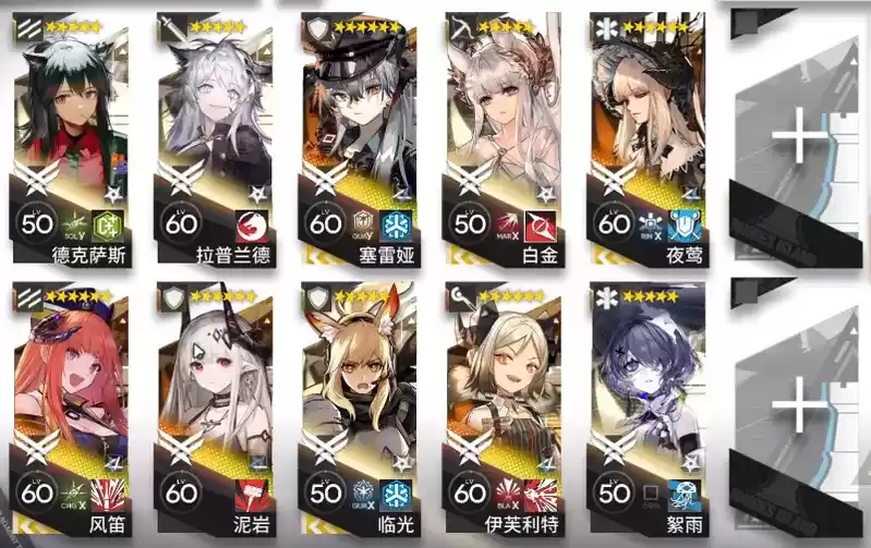 重装:塞雷亚(1技能专精三+一模)、临光(1技能专精三+1模)、泥岩(2技能专精三)