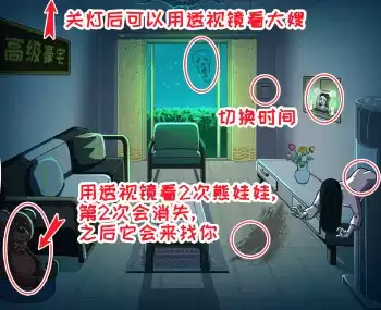 1、本关分为开灯和关灯两个场景,需要点击背景墙上的开关切换