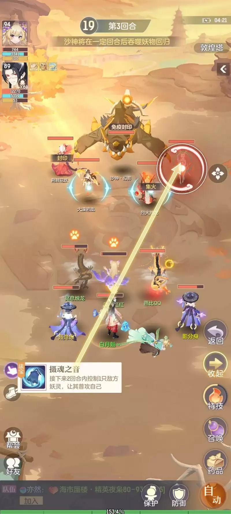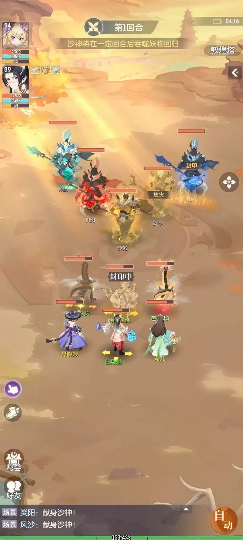 只要狐狸,媚儿,主角没被沙化就可以继续,全力集火风沙保证第二回合可以打死,其他无所谓