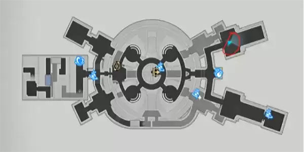 1、打开地图我们首先要来到收容舱段的上图画圈的位置,我们会看到一个一个奇形怪状的物品,点击这个物品我们需要进行互动;