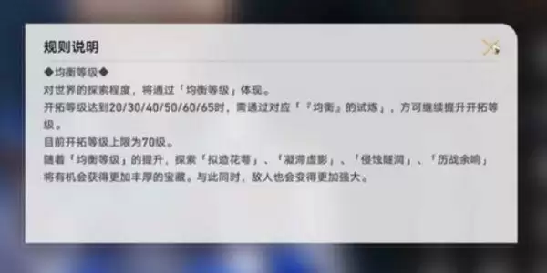 均衡试炼是当玩家开拓等级达到20/30/40/50/60/65后,并且完成对应主线任务方可触发均衡试炼。