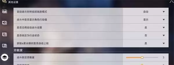 3:接着,我们在左侧的菜单栏中点击最后一个,找到延续自动战斗的功能,我们选择是就好了;