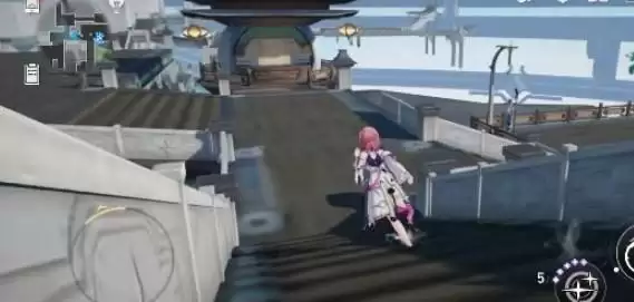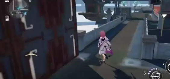 4、走到一定的距离之后在一个红色的围墙旁边的角落的位置可以看到梓桥,旁边还有两只机巧鸟。