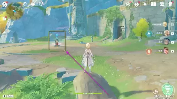 ⑤用岩元素的元素技能攻击元素柱,完成挑战,开启遗迹,遗迹在柱子正对面。