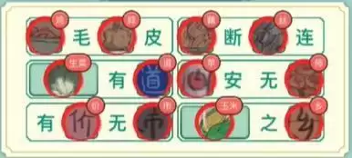 鸡毛蒜皮、藕断丝连、平安无事、生财有道、有价无市、鱼米之乡