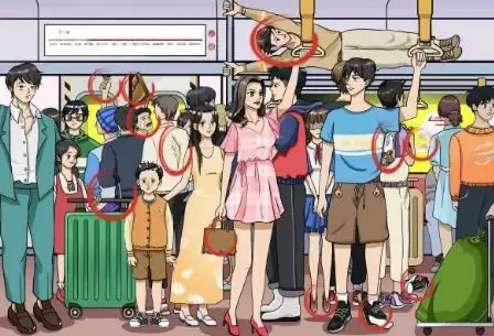 1、本关要找的上班早高峰的12个可怕之处分别是:无处可抓、村衣破裂、坐过两站、门上夹包、人体旗帜、雨伞挤弯、纸袋撕裂、双脚离地、走失的鞋、挤碎核桃、痛苦面具、挤破鞋子