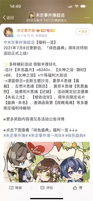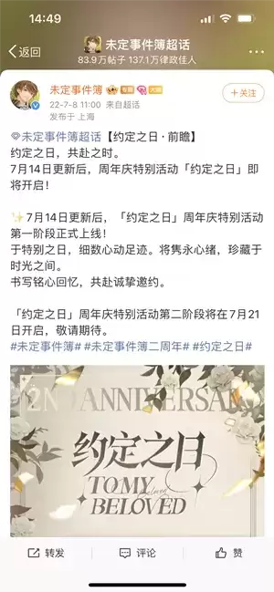 未定事件簿周年庆是几月几号
