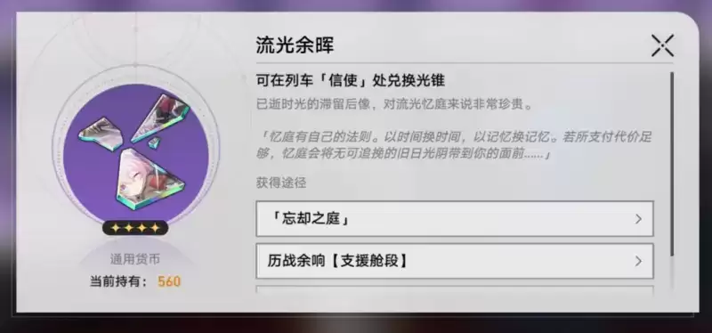 如果是细心的小伙伴,一定发现了忘却之庭的专属货币:流光余晖。这类货币在打周本时也能获得,可以在忘却之庭兑换指定的四星光锥。