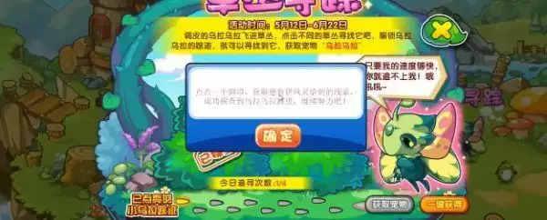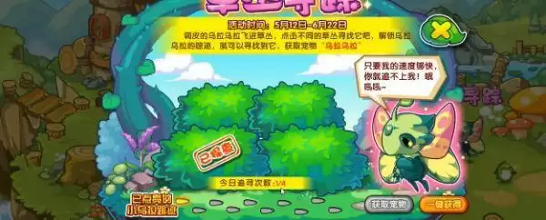 1、草丛寻踪调皮的乌拉乌拉飞进草丛,点击不同的草丛寻找它即可解锁乌拉乌拉的踪迹,就可以寻找到它;