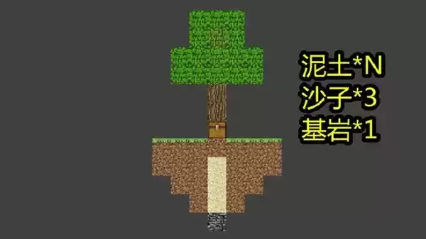 1、空岛上只有一棵大树,,砍树可以获得木头,加工合成木板。