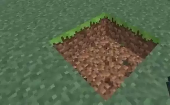 3、在草地上挖一个正方形的坑,一格就好了。