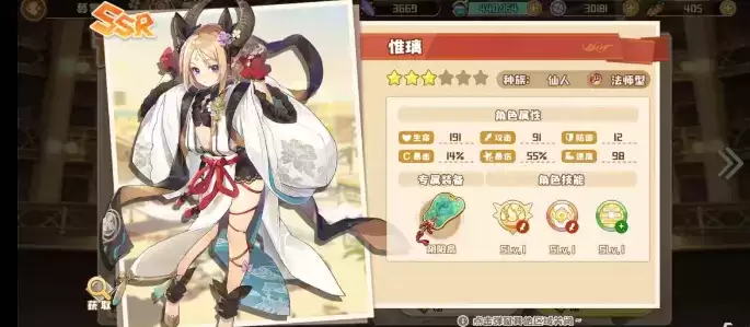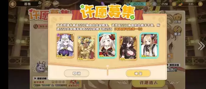 在许愿募集的限定卡池中,可选择提升两名SSR角色的出现概率,选择后SSR角色的总概率不变,所选SSR出现的概率占SSR总概率的25%,许愿选人时选择惟璃做为概率提升的角色,会大大提升抽中概率。