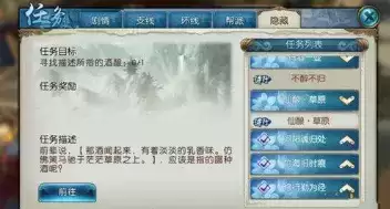 凛冽寒潭酒须弥山左上角(14,95)、雁归菊花酒段氏山庄右上角(118,110)、酸甜果子酒小池镇破凶点附近(60,4)、健康岁酒河阳左上角(23,122)隐藏任务完成之后可以获得蒲公英坐骑了,还可以直接获得一个称号、