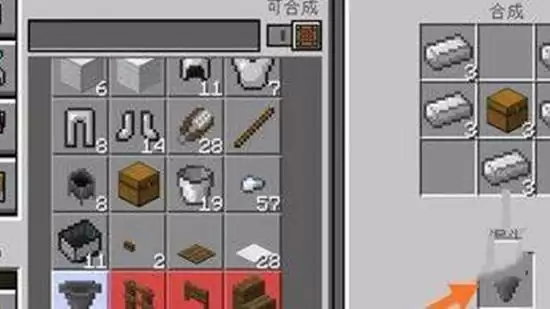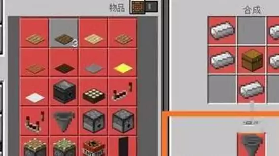 1、在工作台上查看漏斗的合成配方,需要准备箱子和铁锭。