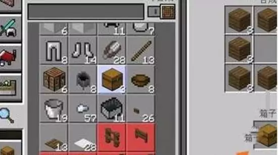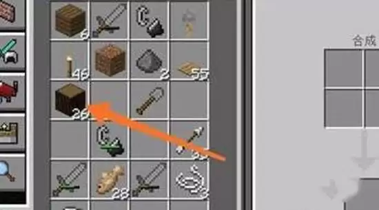 4、打开工作台,把橡木块加工成橡木板,这样就可以制作木箱了。