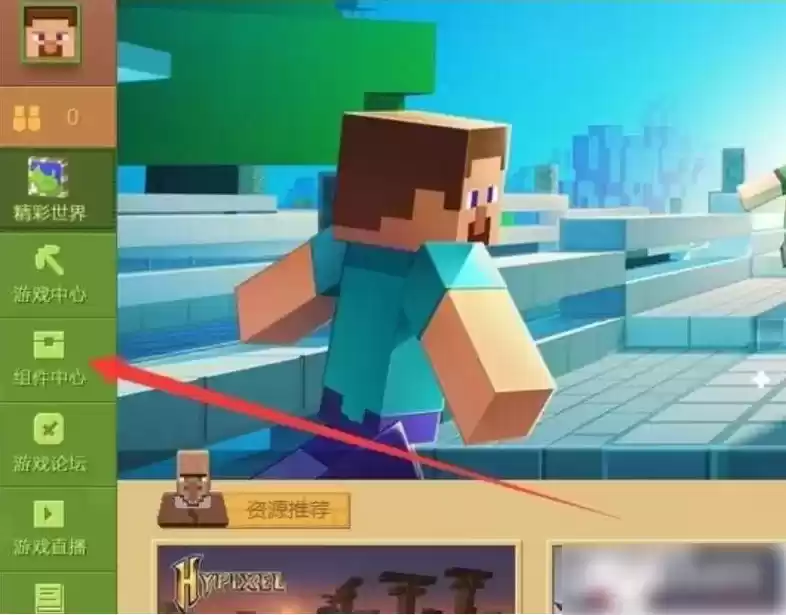 1、首先打开我的世界国服客户端,在客户端左方找到去往组件中心的按钮,打开它。