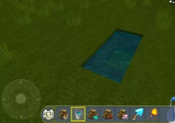 2、拿着水桶去河边打水,回来倒入坑中。