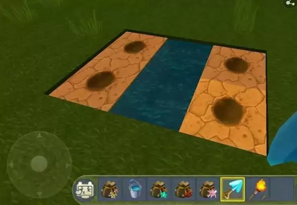 3、拿出铲子,在水坑边上挖几个小土坑。