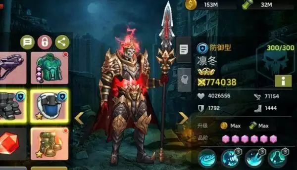 3、凛冬:*强PVP前排,狗肉还带控,有了就练吧,但是获得较困难宝石堆双血,神器带减伤 血。