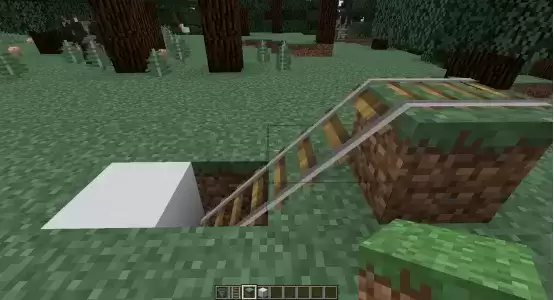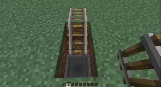 陷阱箱陷阱制作教程:1、挖两格深的坑,放入漏斗,再挖一格深的坑,放入铁轨。