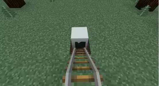 3、在轨道上面放漏斗矿车,滑到坑里的方块上。