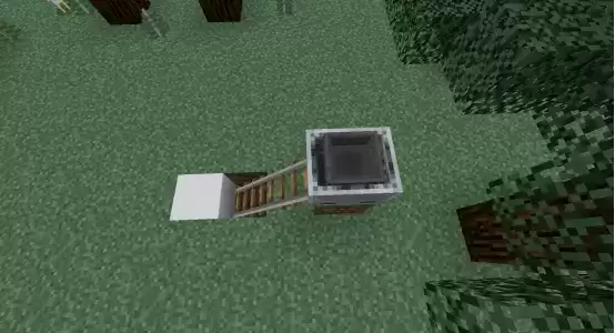5、用方块去遮挡陷阱,在漏斗上面放一个箱子。