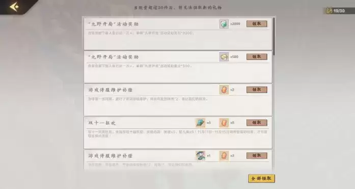 在游戏的进程中,经常会有全服的活动,完成活动后,我们就可以在邮箱中领取奖励。