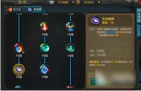 石化陷阱是一个控制加上输出技能,可以释放一个陷阱,对周围敌人造成物理伤害,并且石化3秒。这个技能主要是有几率减少一击脱离的CD时间。