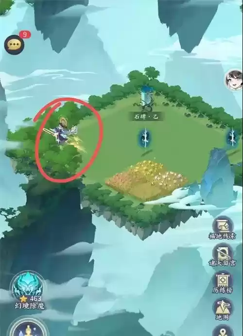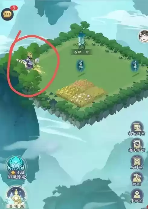(3)第三步,地图内有个石碑甲,走左侧的传送震。