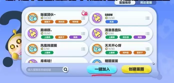 2、进入这个界面后我们就可以选择加入还是创建蛋圈了
