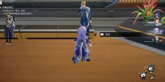 4。对话之后,让我们找出神秘故事的真相。直接走到基地驾驶舱段传送点另一边的楼梯底下,就能看到一个NPC在自言自语。对话结束后,你可以知道发出奇怪声音的门的位置。