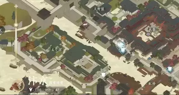 1、首先,来到任务地点坐标为(1185,968)的位置处,也就是在甜水巷附近的位置。