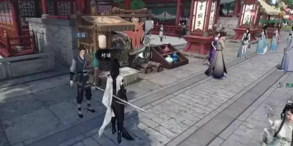2、玩家到达沈容的摊位前,在这里进行对话,之后在这里需要体验他的小游戏。