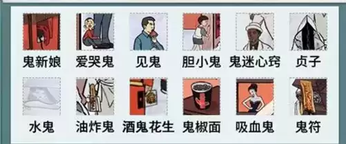 鬼新娘、爱哭鬼、见鬼、胆小鬼、鬼迷心窍、贞子、水鬼、油炸鬼、酒鬼花生、鬼椒面、吸血鬼、鬼符