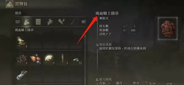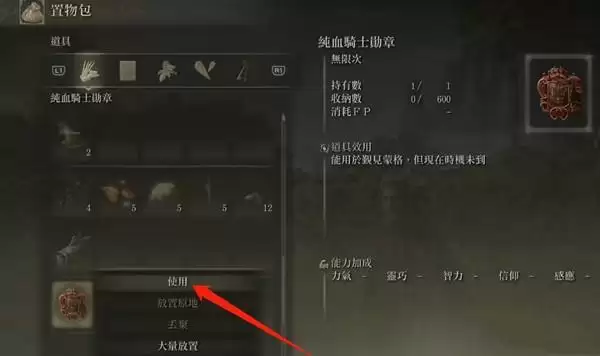 1、打开背包,包找到纯血骑士勋章。