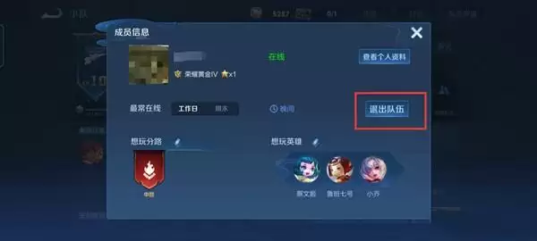 4、弹出成员信息叶念,点击【退出队伍】即可。