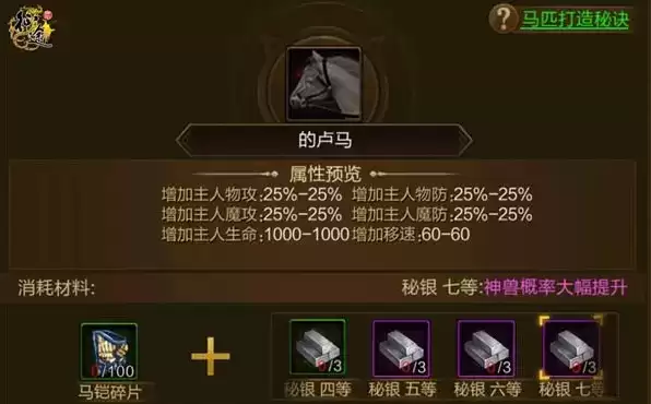 收集齐了材料和的卢马碎片之后,就可以打造马匹了,选中材料,点击打造,你的背包里就会多了一匹的卢马。