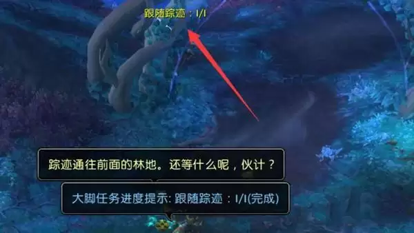 3、在任务地点寻找线索,发现一串发光的脚印,可以把显示效果开高一点,这样看得更清楚,跟着脚印走。